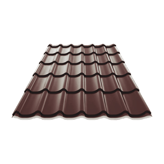 Металлочерепица Монтеррей из европейского металла ArcelorMittal толщиной 0,50 мм, матовым покрытием в Минске. Плавный рельеф профиля металлочерепицы Монтеррей схож с набегающей волной, стыки листов идеально прилегают друг к другу. Цена указана за м.кв.